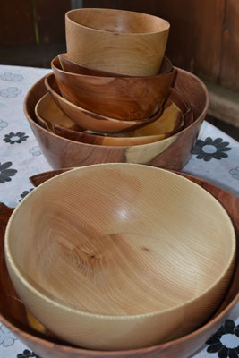 Diese gedrechselten Schönheiten sind Beispiele, die als Unikate bei uns käuflich erhältlich sind. Bitte schreiben Sie uns per Kontaktformular falls Sie sich für einen Gegenstand interessieren. Benützen Sie dazu die Nummer, die im violetten Kreis steht damit wir schauen können, ob etwas ähnliches (Grösse, Stil, Preis) noch an Lager ist. Selbstverständlich können wir auch etwas extra für Sie produzieren.